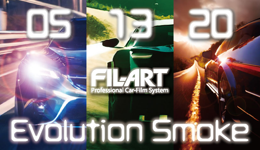 三陽工業オリジナルの耐久性、断熱性、日射吸収率に優れたカーフィルム「Evoluition Smoke」EVOシリーズ。